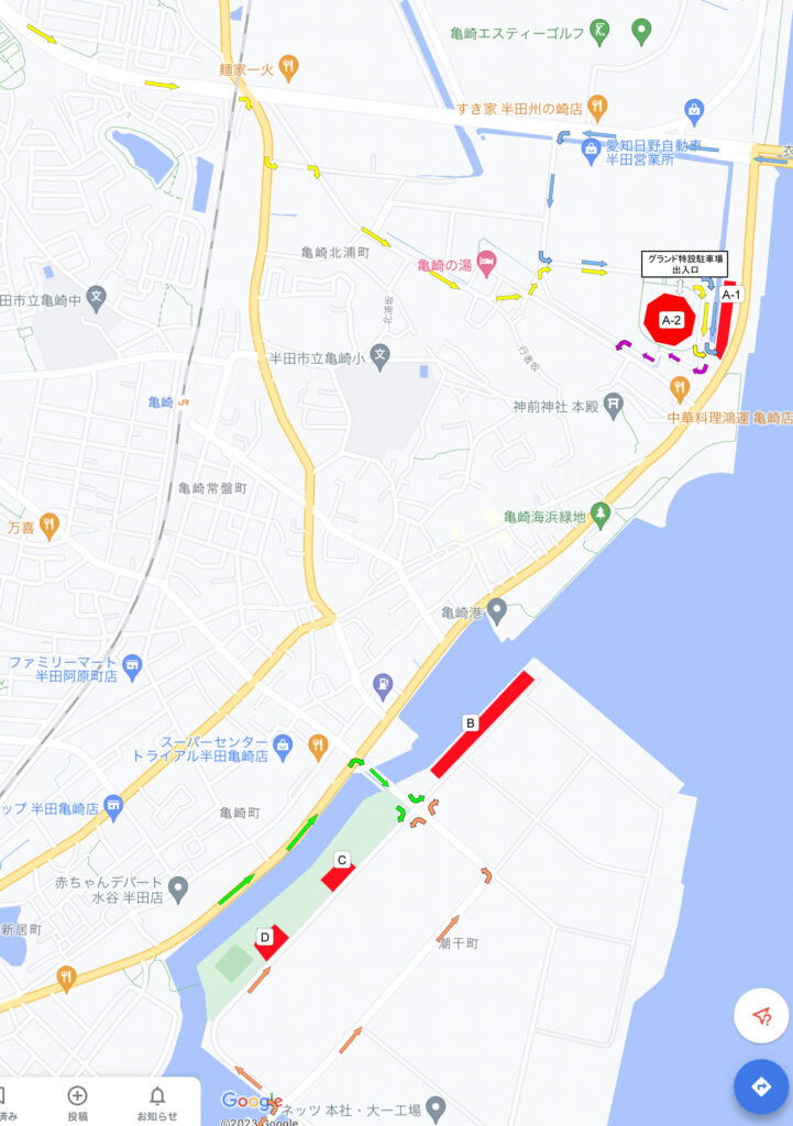 ※グランド特設駐車場から退場する時は必ず道路を左折してください。 - B:亀崎港ヨットハーバー駐車場 無料 無責管理